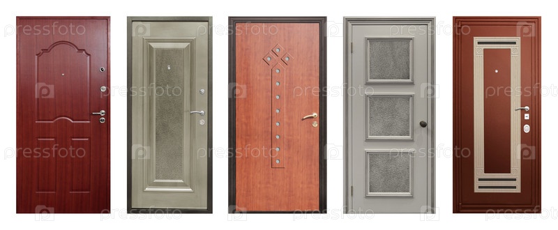 Набор моделей входных металлических дверей, изолированных на белом фоне