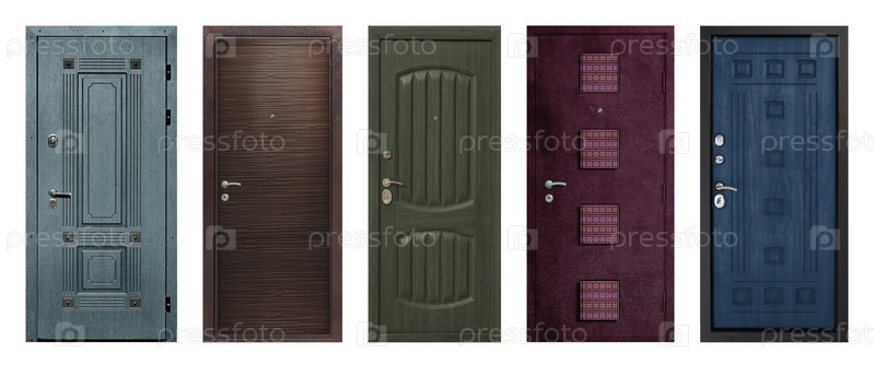 Набор моделей входных металлических дверей, изолированных на белом фоне