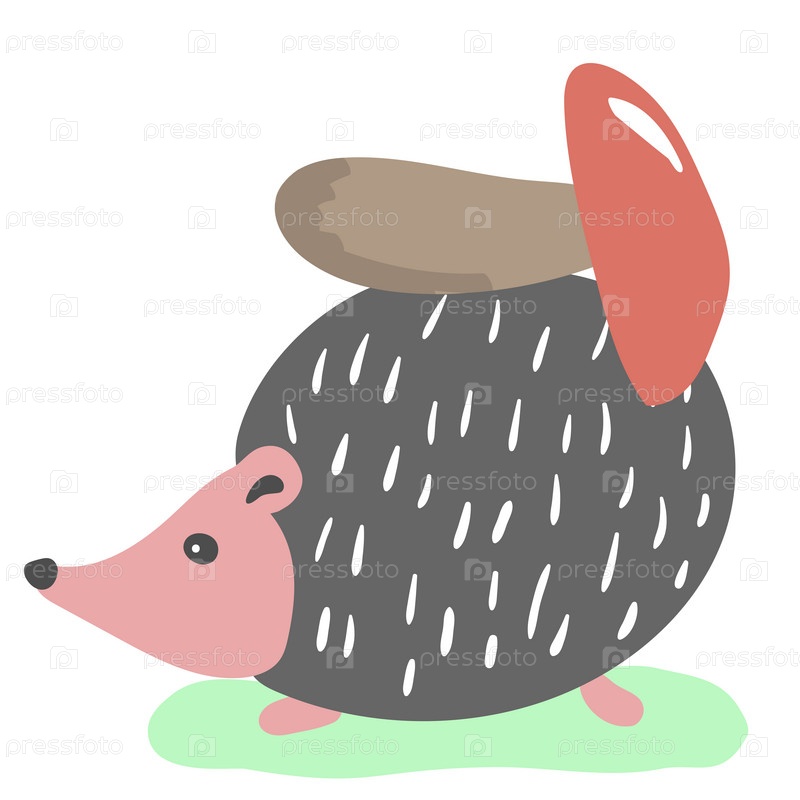 Ежик несет гриб на спине