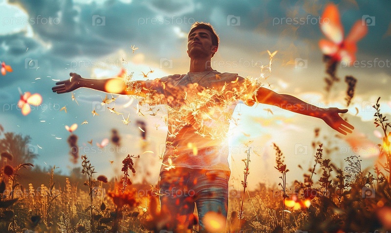 Летняя и весенняя энергия. Мужчина улавливает флюиды