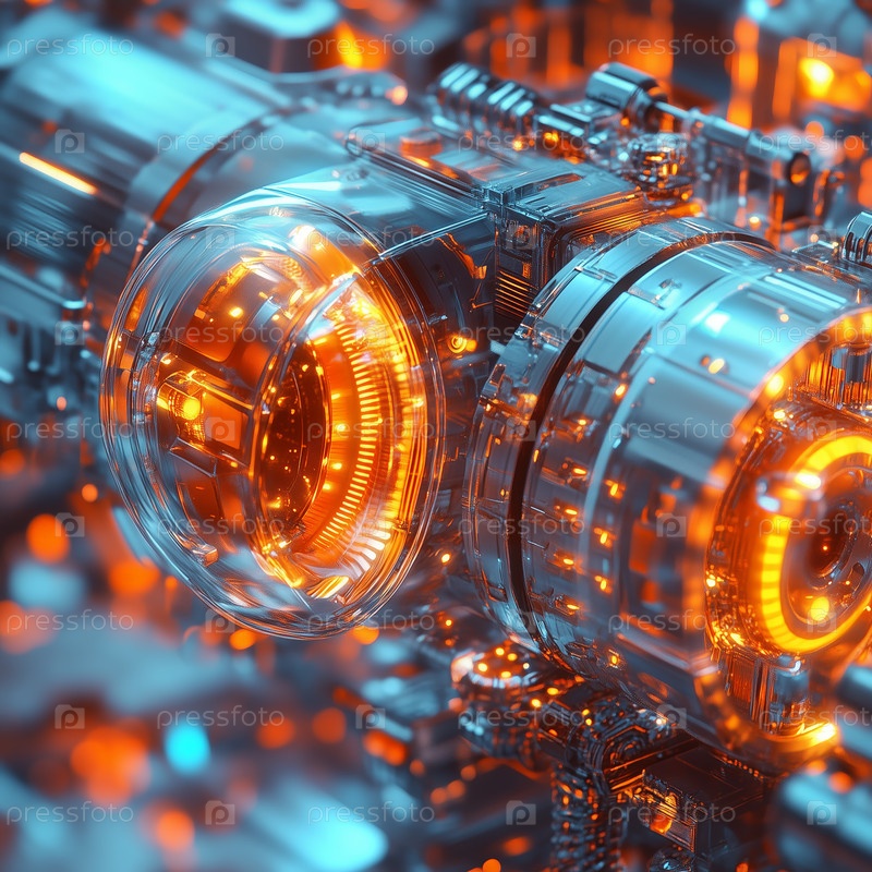 Футуристическое механическое устройство со светящимися оранжевыми компонентами
