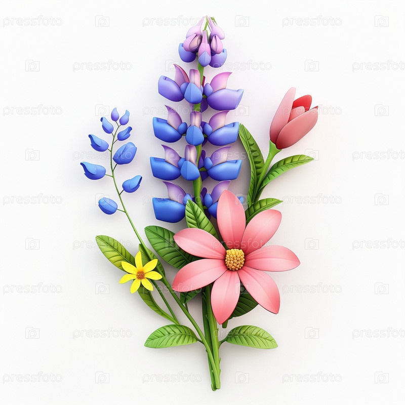 Композиция из 3D цветов на изолированном белом фоне