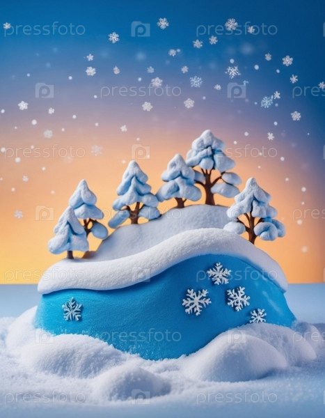 Милые рождественские елки, покрытые свежим белым снегом. Чудесный зимний лес. Новогодняя и рождественская атмосфера. Праздничная и очаровательная зимняя страна чудес. Снежинки, сугробы и холмы. Создано с помощью искусственного интеллекта