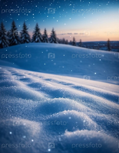 Милый рождественский пейзаж, покрытый свежим белым снегом. Чудесный зимний лес. Новогодняя рождественская атмосфера. Праздничная и очаровательная зимняя страна чудес. Снежинки, сугробы и холмы. Создано с помощью ИИ