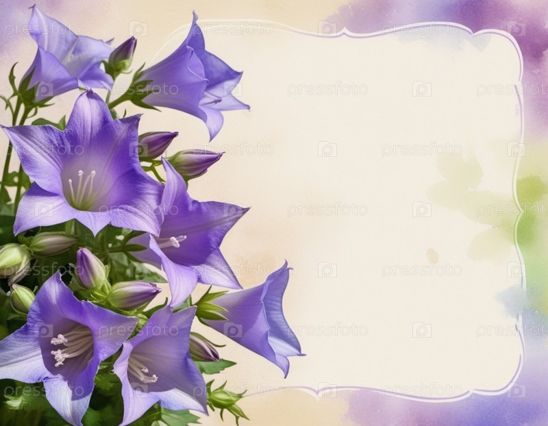 Чистый лист бумаги, окруженный рамкой из фиолетовых или синих колокольчиков. Цветы, расположенные вокруг бумаги, создают естественную красивую границу. Фон или шаблон для различных целей, пространство для копирования