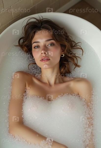 Молодая женщина наслаждается расслабляющей ванной, окруженной мягкой, пушистой пеной, в спокойной обстановке ванной комнаты днем. Генеративный ИИ