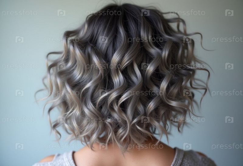 Крупный план демонстрирует красивые, блестящие серые пепельные локоны, которые демонстрируют потрясающую текстуру и яркий блеск, подчеркнутый мягким освещением. Замысловатые локоны красиво обрамляют голову. Генеративный ИИ