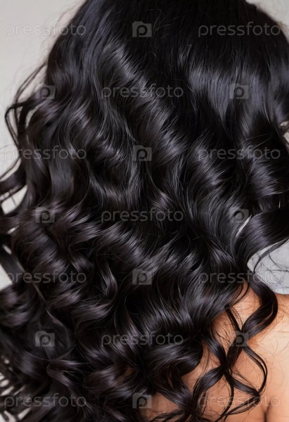Красивые локоны блестящих черных волос показаны крупным планом, подчеркивая их живую текстуру и здоровый блеск под мягким дневным светом. Косметика для ухода. Генеративный ИИ