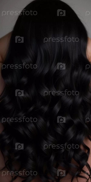 Красивые локоны блестящих черных волос показаны крупным планом, подчеркивая их живую текстуру и здоровый блеск под мягким дневным светом. Косметика для ухода. Генеративный ИИ