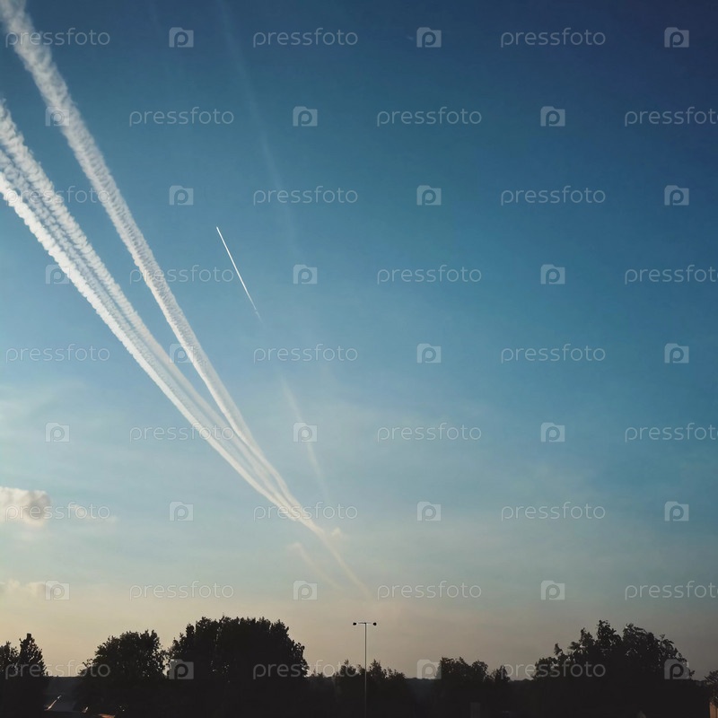 Теория заговора о химтрейлах. Долгосрочные конденсационные следы, оставленные в небе высоко летящими самолетами, на самом деле являются химтрейлами, состоящими из химических или биологических агентов, распыляемых в гнусных целях