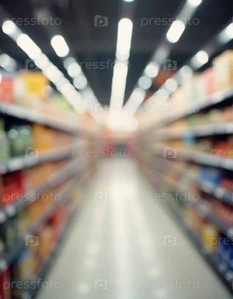 Цветные фрукты и овощи выстраиваются на полках продуктового магазина, создавая оживленную атмосферу для покупателей. Товары выложены в привлекательном для просмотра виде. Упакованные продукты питания на полках. ИИ