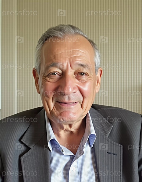 Пожилой мужчина из Таиланда тепло улыбается, будучи одетым в формальную одежду. Он выглядит расслабленным и довольным, создавая уютную атмосферу в помещении в яркий день