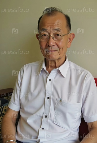 Пожилой мужчина, живущий в Таиланде, удобно сидит в помещении, излучая мудрость и спокойствие. Его вдумчивое выражение лица предполагает глубокие размышления о жизни, культуре и опыте. Генеративный ИИ