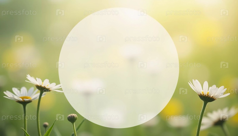 Цветы маргаритки мягко цветут в естественной обстановке, улучшенной закругленным полупрозрачным пространством для текста. Солнечный свет создает мягкий эффект боке, добавляя тепла. Аромат, вкус, запах ромашки. Генеративный ИИ