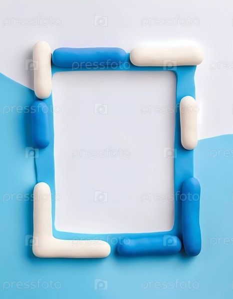 Абстрактное расположение синих и белых фигур из пластилина создает рамку над пустой областью. Этот дизайн приглашает к творчеству, идеально подходит для художественных проектов или презентаций. Генеративный ИИ
