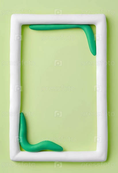 Прямоугольная рамка в белом и зеленом цветах расположена на мягком зеленом абстрактном фоне. Пустое пространство внутри приглашает к персонализации и креативному дизайну