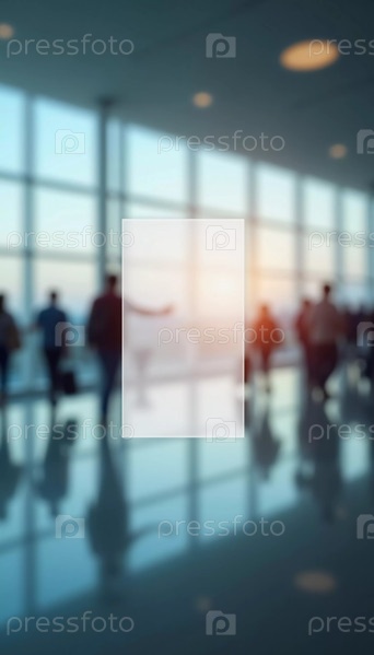Толпы путешественников перемещаются по просторному терминалу аэропорта, занимаясь различными видами деятельности и готовясь к предстоящим рейсам в утреннем или вечернем свете. Расфокусированное боке. Генеративный ИИ