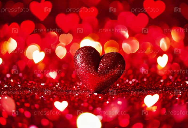 Ярко-красный блеск покрывает фон, украшенный разбросанными сердцами разных размеров, создавая праздничную и романтическую атмосферу, идеальную для особых случаев. Генеративный ИИ