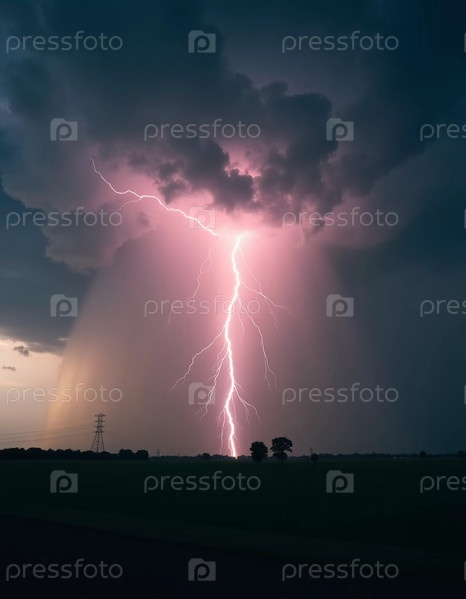 Драматическое зрелище природы разворачивается, когда яркие молнии бьют из темных, закручивающихся грозовых облаков, создавая электризующую атмосферу, которая приковывает внимание. Генеративный искусственный интеллект