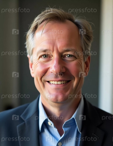 Наслаждаясь теплым днем, шведский мужчина с приветливой улыбкой общается с друзьями в современной атмосфере помещения, излучая позитив и обаяние