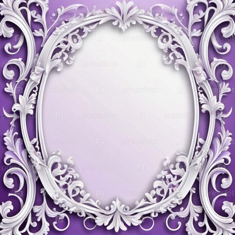 Рамка с сиреневыми цветами в стиле рококо-барокко. Нежные сиреневые цветы, лепестки нежно-пастельного фиолетово-белого цвета. Изображение передает сложные детали цветков, демонстрируя нежную красоту. AI