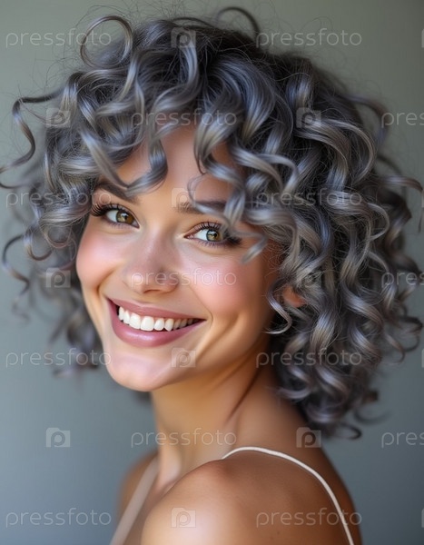 Поразительный крупный план демонстрирует роскошные седые пепельные локоны, сверкающие блеском. Мягкие волны элегантно ниспадают каскадом, подчеркивая текстуру и красоту волос в мягком естественном свете. Генеративный ИИ