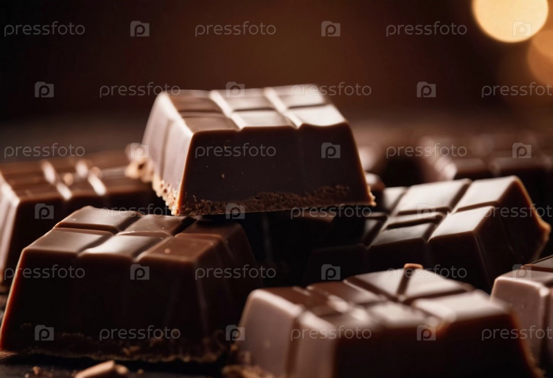Ассорти из трюфелей из темного шоколада окружает квадрат из темного шоколада, все покоится на подложке из какао-порошка, что подчеркивает их роскошную текстуру и насыщенность. Генеративный ИИ