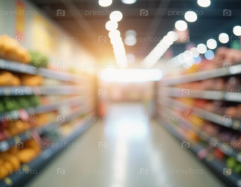 Товары выложены в привлекательном для просмотра виде. Упакованные продукты питания выстраиваются на полках продуктового магазина, создавая живую атмосферу для покупателей. Круглое прозрачное свободное пространство для текста. Генеративный ИИ