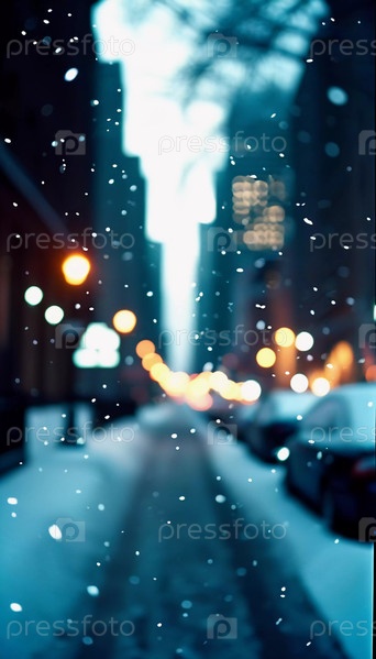 Снежная буря покрыла городские улицы толстым слоем снега, создавая спокойную, но оживленную атмосферу, когда машины едут по обледенелой дороге в сумерках. Дух праздника в праздничный сезон. Генеративный ИИ