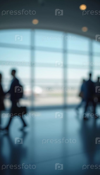 Толпы путешественников перемещаются по просторному терминалу аэропорта, занимаясь различными делами и готовясь к предстоящим рейсам в утреннем или вечернем свете. Расфокусированное боке. Генеративный ИИ