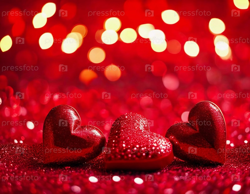 Ярко-красный блеск покрывает фон, украшенный разбросанными сердцами разных размеров, создавая праздничную и романтическую атмосферу, идеальную для особых случаев. Генеративный ИИ