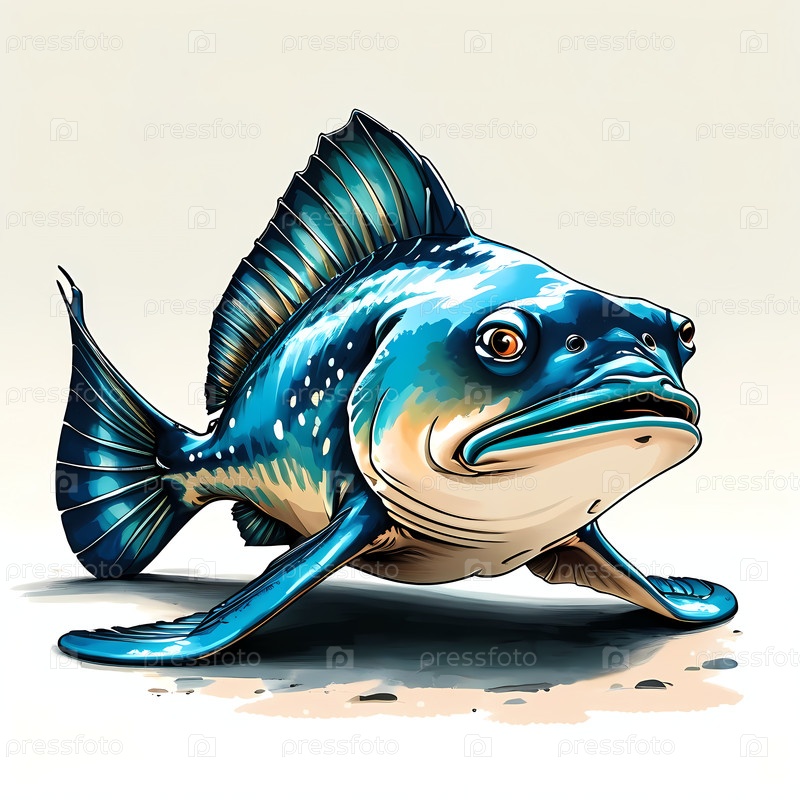 Яркая рыба с выраженными чертами лица грациозно движется по гладкой песчаной поверхности, купаясь в мягком свете и исследуя свое уникальное окружение