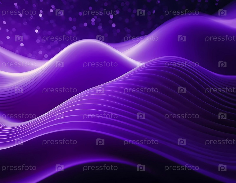Мягкие, струящиеся 3D-волны образуют абстрактный узор в насыщенных оттенках фиолетового и пурпурного, вызывая чувство спокойствия и умиротворенности. Градиент усиливает безмятежную атмосферу визуального эффекта. Генеративный ИИ