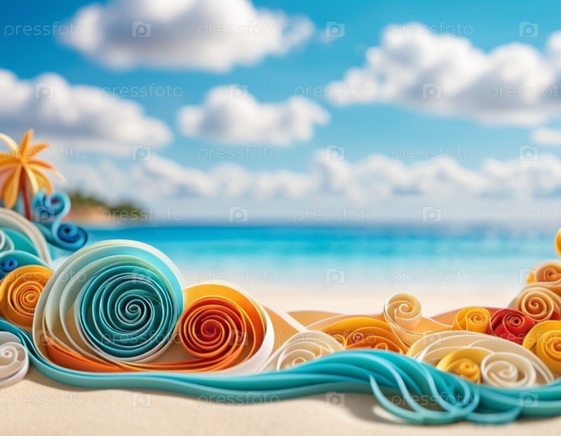 Художественная пляжная сцена с мягкими волнами, песчаным берегом. Яркие цвета создают умиротворяющую атмосферу. Сгенерированный ИИ. Концепция путешествия на солнечном пляже. Копировать пространство. Солнечный тропический рай. Фон пляжа