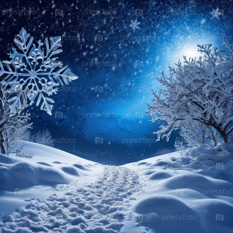 Милый рождественский пейзаж, покрытый свежим белым снегом. Чудесный зимний лес. Новогодняя рождественская атмосфера. Праздничная и очаровательная зимняя страна чудес. Снежинки, сугробы и холмы. Создано с помощью ИИ