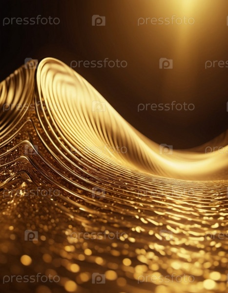 Плавные 3D-волны черного и золотого цветов создают завораживающий абстрактный узор с плавными изгибами и световыми градиентами на темном фоне, вызывающем артистизм и спокойствие. Генеративный ИИ