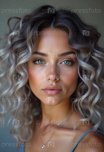 Поразительный крупный план показывает роскошные седые пепельные локоны, сверкающие блеском. Мягкие волны элегантно ниспадают, подчеркивая текстуру и красоту волос в мягком естественном свете. Генеративный ИИ