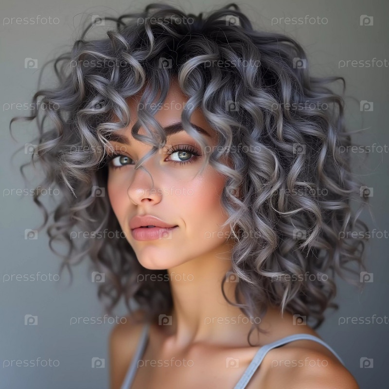 Поразительный крупный план показывает роскошные седые пепельные локоны, сверкающие блеском. Мягкие волны элегантно ниспадают, подчеркивая текстуру и красоту волос в мягком естественном свете. Генеративный ИИ