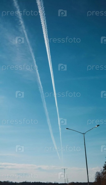 Теория заговора о химтрейлах. Долгосрочные конденсационные следы, оставленные в небе высоко летящими самолетами, на самом деле являются химтрейлами, состоящими из химических или биологических агентов, распыляемых в гнусных целях