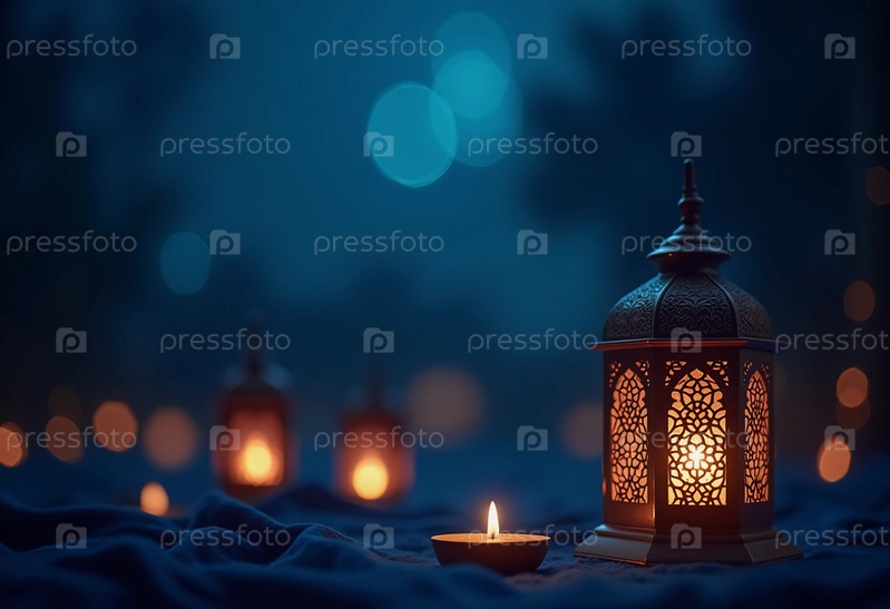Мягкий свет красиво оформленного арабского фонаря и горящей свечи создает теплую, уютную атмосферу, идеально подходящую для ночных празднеств Рамадана среди мусульман. Генеративный ИИ