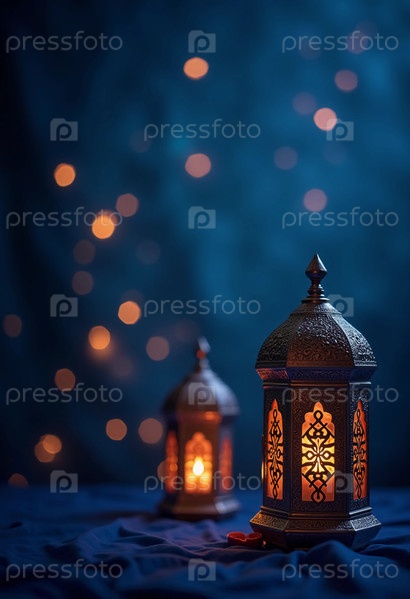 Мягкий свет красиво оформленного арабского фонаря и горящей свечи создает теплую, уютную атмосферу, идеально подходящую для ночных празднеств Рамадана среди мусульман. Генеративный ИИ