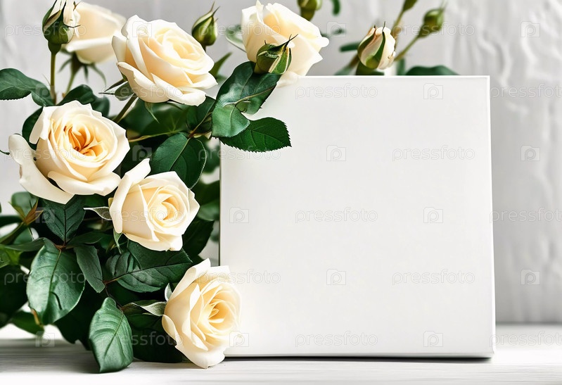 Нежные белые розы и мягкие бутоны создают элегантную рамку вокруг пустой открытки, идеально подходящую для личных сообщений или декоративных целей на любом мероприятии. С днем рождения, днем матери, днем святого Валентина. Генеративный ИИ