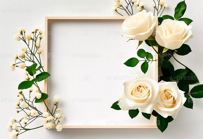 Нежные белые розы и мягкие бутоны создают элегантную рамку вокруг пустой открытки, идеально подходящую для личных сообщений или декоративных целей на любом мероприятии. С днем рождения, днем матери, днем святого Валентина. Генеративный ИИ