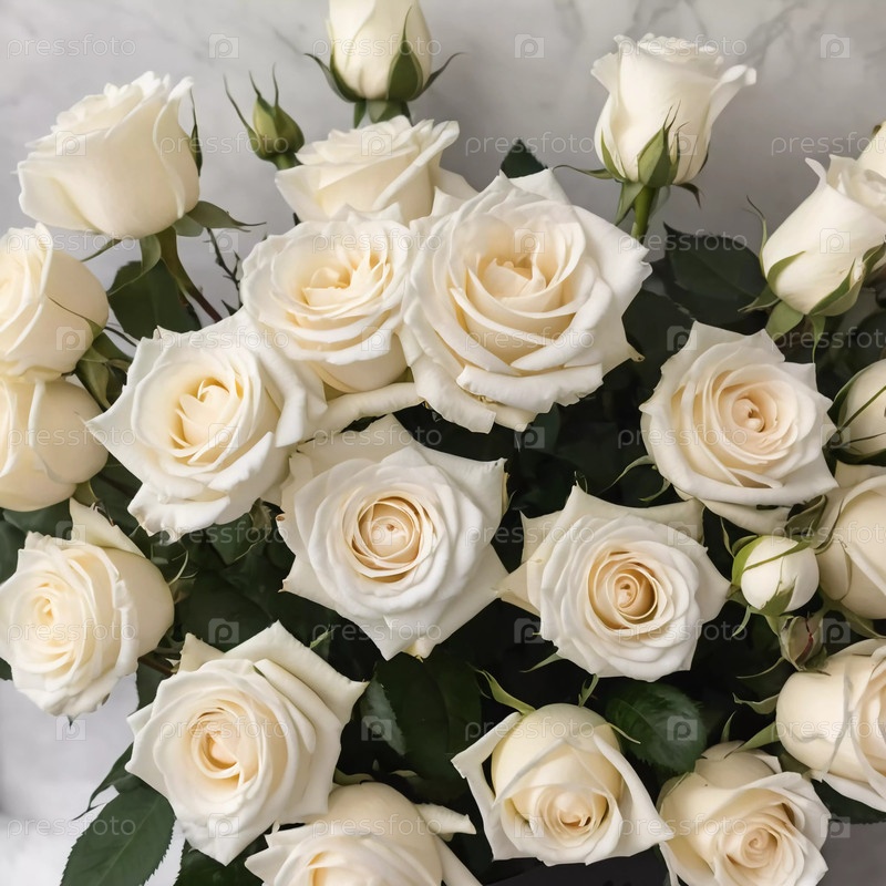 Потрясающая композиция из белых роз наполняет комнату изяществом, их нежные лепестки раскрываются под теплым светом. Генеративный искусственный интеллект