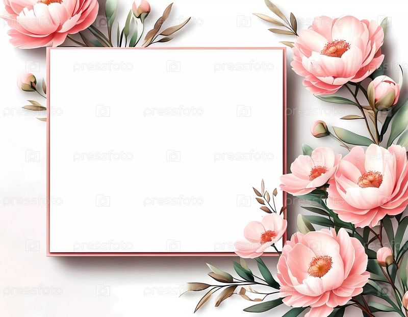 Нежно-розовые пионы элегантно окружают пустое пространство, идеально подходящее для личных заметок или художественных творений, излучая тепло и красоту для любого случая