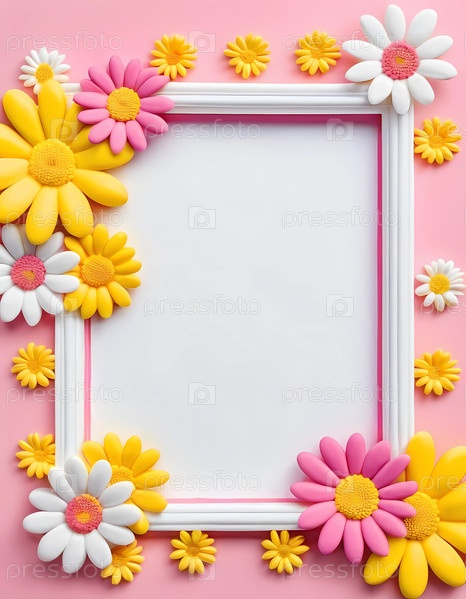 Восхитительная цветочная рамка, украшенная солнечно-желтыми и нежно-розовыми ромашками, создает радостную атмосферу. Яркий розовый фон усиливает очарование, оставляя простор для фантазии