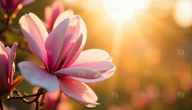 Нежные цветы магнолии, их нежно-розовые лепестки, сияющие в утреннем солнце, пробуждают сад яркими оттенками. Купаясь в золотом свете, каждый цветок, кажется, танцует от радости, когда начинается день. AI