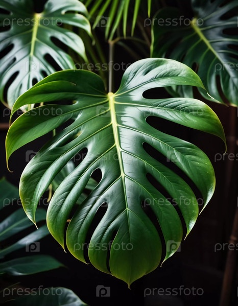 Яркие листья монстеры создают в помещении чарующую атмосферу, их поразительные формы и текстуры привлекают внимание, пока они купаются в мягком свете, усиливая атмосферу спокойствия. Генеративный ИИ