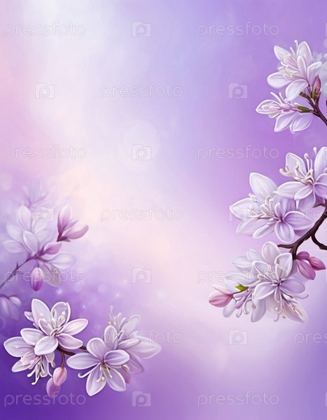 Снимок нежных сиреневых цветов, лепестки мягкие, пастельно-фиолетовые и белые, на размытом фоне. Изображение запечатлело сложные детали цветков, демонстрируя их нежную красоту. AI