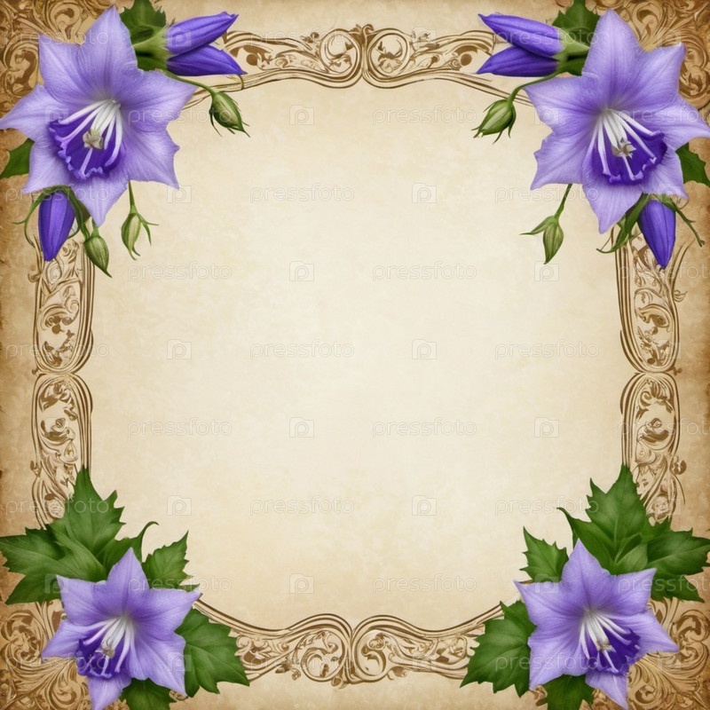 Чистый лист бумаги, окруженный рамкой из фиолетовых или синих колокольчиков. Цветы, расположенные вокруг бумаги, создают естественную красивую границу. Фон или шаблон для различных целей, пространство для копирования